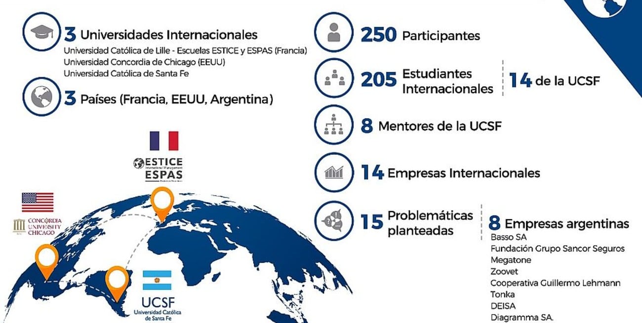La actividad vinculó estudiantes, docentes y empresarios de Argentina, Francia y Estados Unidos para trabajar juntos sobre posibles soluciones a las problemáticas identificadas por las empresas durante la pandemia. Así, 205 estudiantes de las tres universidades trabajaron con integrantes de 14 compañías internacionales, las que presentaron 15 desafíos bajo los temas: Management & Communication, Marketing & Business Development y Entrepreneurship.