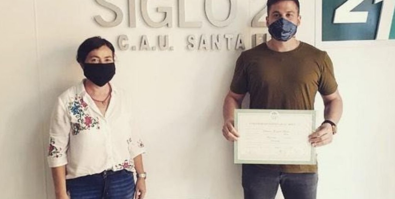 En el marco de Home Working, Universidad Siglo 21 a través del Coordinador del CAU Santa Fe, Mgter. Oscar Matiller, agasajó a la Lic. Alicia Gaitan como una de las mejores Asesoras de Carreras a Nivel Nacional, premiando su esfuerzo por conseguir los objetivos propuestos con su dedicación y atención a los interesados.