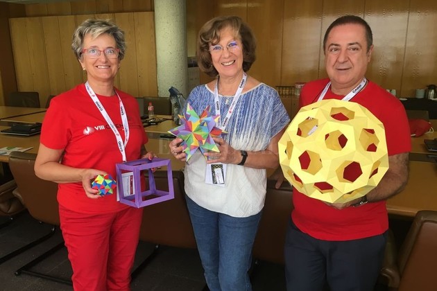 Además contó que llevó “una maleta plena de poliedros de origami”, similares a los que están disponibles en su “cueva” -una habitación repleta de literatura y objetos geométricos-. que “tienen como alma la Matemática”. Y todos esos se quedaron en la Universidad Complutense de Madrid, en manos de los organizadores; un gesto para destacar la gratitud de sentirse valorada por la convocatoria.