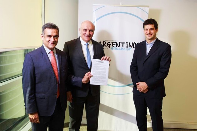La firma se realizó en las oficinas del Observatorio Argentinos por la Educación en Vicente López. Estuvieron presentes, además, Luis Rosales, precandidato a la vicepresidencia por la fórmula del frente Despertar, Cristina Carriego, directora del Instituto para el futuro de la educación de Pansophia Project, Marcelo Rabossi, profesor de la Escuela de Gobierno de la Universidad Torcuato Di Tella y Manuel del Pino, director de Innovación del Observatorio.