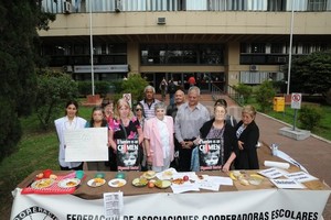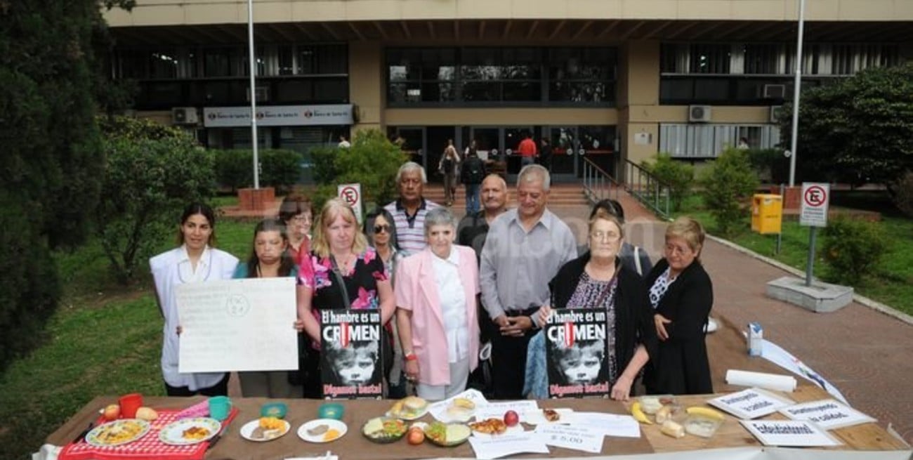 El acto fue convocado por la Federación de Cooperadores Escolares del Departamento La Capital y estuvo dirigida a sensibilizar sobre los “malabares” que deben hacer las ecónomas y cocineras de las escuelas para dar de comer a los alumnos por 5 pesos, que es el presupuesto que reciben por cada almuerzo. En tanto, por copa de leche, el aporte que llega a las escuelas es de 1,70 pesos.