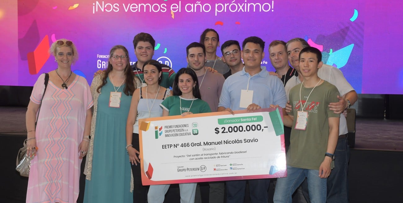Durante una jornada organizada por la Fundación Banco Santa Fe en la Estación Belgrano de la capital provincial, 34 escuelas secundarias de la región presentaron sus propuestas desarrolladas durante 6 meses de formación y evaluadas por un jurado de especialistas. "Del sartén al transporte: fabricando biodiesel con aceite reciclado de fritura", de la EETP N° 466 General Manuel Savio de Rosario, resultó el proyecto ganador de la quinta edición del Premio Fundaciones Grupo Petersen a la Innovación Educativa y recibió 2 millones de pesos para su desarrollo.