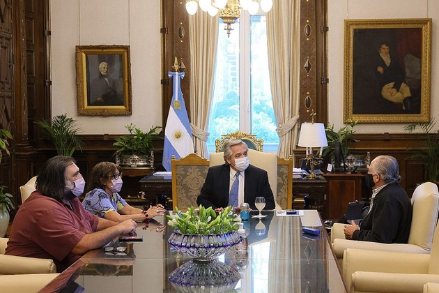 Poco antes de celebrarse el primer encuentro paritario nacional del año, el presidente Alberto Fernández recibió en Casa Rosada al secretario general de la Central de Trabajadores de la Argentina (CTA), Hugo Yasky; el secretario General del Sindicato Unificado de Trabajadores de la Educación de Buenos Aires (Suteba), Roberto Baradel, y la secretaria General de la Confederación de Trabajadores de la Educación (Ctera), Sonia Alesso.
