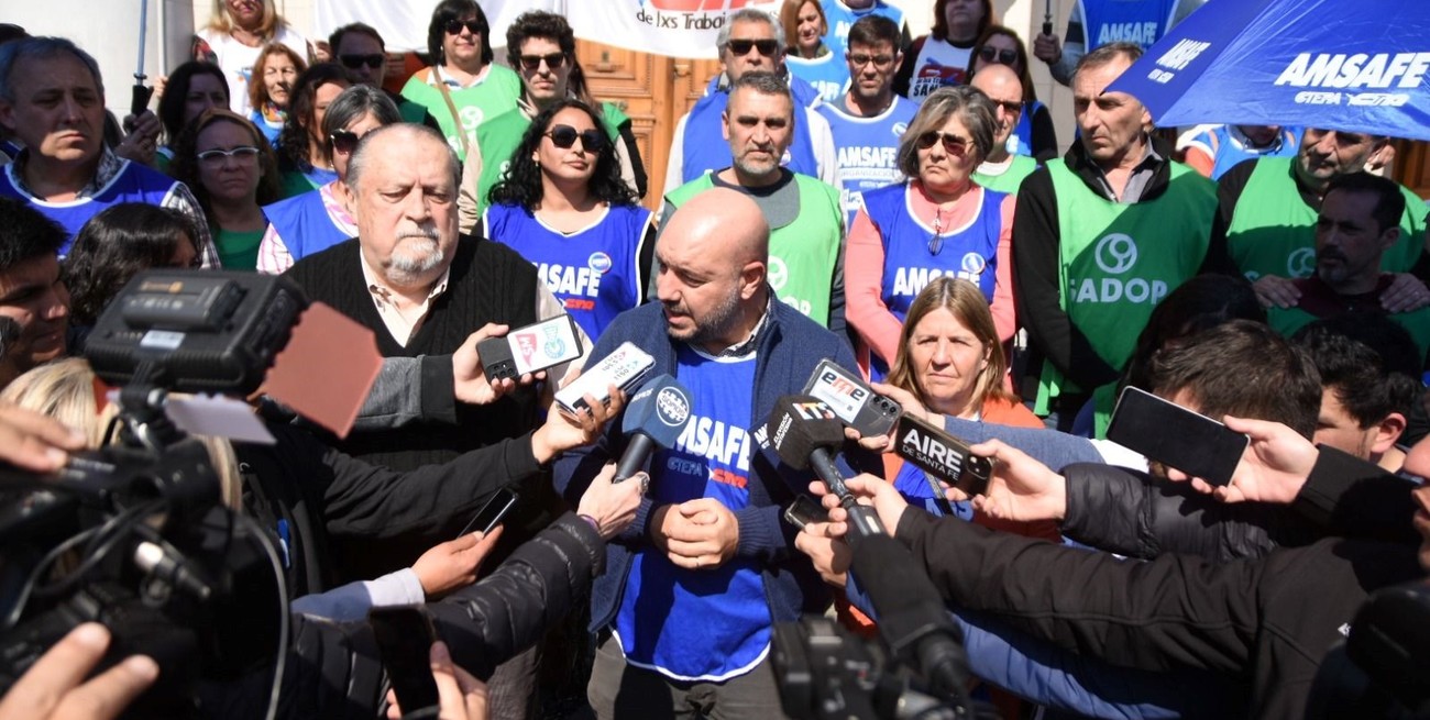 El titular de Amsafe dijo frente a la Legislatura que hace meses vienen llevando adelante discusiones en la provincia y que la comisión directiva del gremio está facultada a llevar adelante todas las acciones que sean necesarias. "Viendo la gravedad de la situación, a partir del día de hoy (jueves), en las 19 delegaciones de Amsafe se van a llevar adelante acciones, conferencias de prensa, reuniones, exigiendo entrevistas a los diputados, a los senadores. Y vamos a confluir en este lugar en la explanada de la Legislatura cuando se trate el proyecto con una gran movilización provincial y, si es necesario, con un paro de actividades", advirtió.
