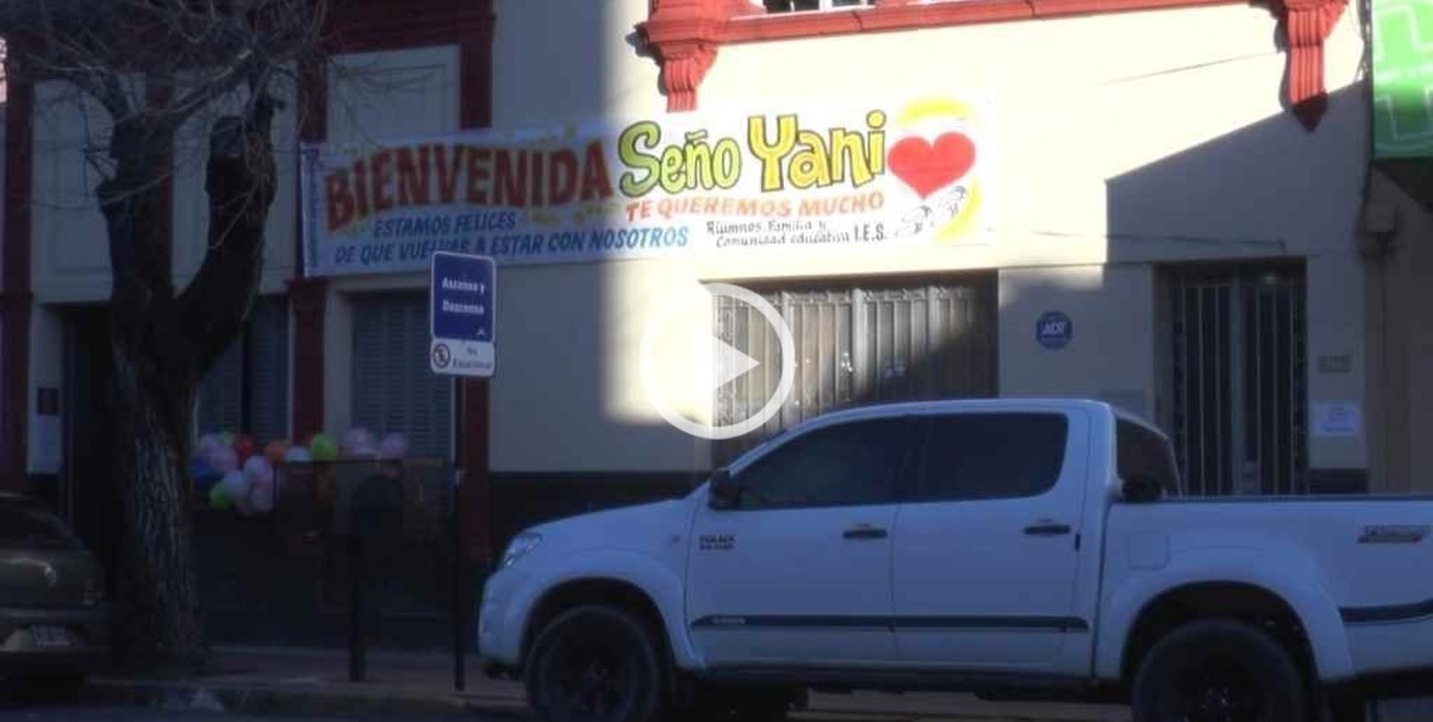 La directora del IES, Yanina Primón, volvió a encontrarse con los niños en la escuela luego de atravesar una larga lucha contra el coronavirus. La docente fue recibida con carteles, pasacalles y mucho afecto de parte de los alumnos y pares.