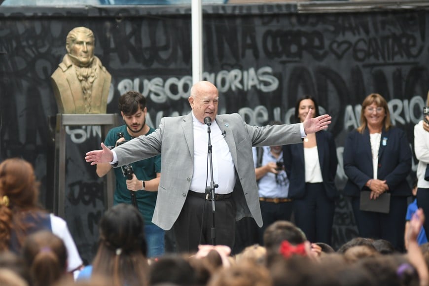 “El 9 de julio, el 25 de mayo, el 11 de septiembre… son fechas patrias conmemorativas. Y la de hoy también lo es. Iniciar las clases es hacer patria. Argentina es un país donde estás de un lado o del otro y pareciera que todos están en el medio, juntos, en la final de un mundial. Entendemos que estamos haciendo patria porque estamos comenzando las clases y no estamos en la calle, donde están los antipatria”, refirió Juan José Sagardía, quien se autodefinió como reiterativo porque siempre da el mismo mensaje cuando comienzan las clases. “Pero bueno... Sarmiento decía eduquemos al soberano repitiendo y repitiendo”, agregó.