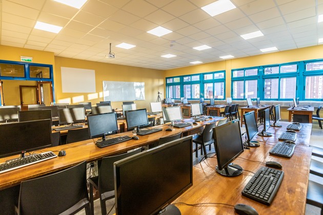 “El trabajo se concretó en dos etapas que se desarrollaron en 321 días de obras”, explicó el director de Obras y Servicios Generales de la UNL, Marcelo Saba, para luego indicar que “la inversión total a valores históricos ascendió a $33.268.886 divididos en dos licitaciones públicas, una por etapa. En la primera se realizaron los cerramientos exteriores con mampostería, la colocación de aberturas e impermeabilización de las azoteas, brindándole estanqueidad al conjunto. En la segunda se realizaron las terminaciones interiores para su habilitación”. En este sentido, Saba puntualizó que “la superficie de 650m2 de este piso está ocupada por 6 aulas que se distribuyen en forma de ‘U’ hacia las mejores orientaciones y el sector núcleo de circulaciones y servicios en la orientación Oeste. Está planificado para alojar 385 estudiantes ya que cuenta con tres aulas para 40 personas cada una; otras dos aulas con capacidad para 90 y una para 85. A su vez, dos de ellas se encuentran completamente equipadas para utilizarse como salas de informática con 35 computadoras en una y 24 en otra. Similar al resto del edificio, el 5to nivel cuenta con tabiquería divisoria de roca yeso, pisos graníticos, cielorrasos también en placas de yeso y aberturas de cerramientos donde se combina el aluminio de alta prestación y tableros de madera de cedro. Los sectores de sanitarios y apoyos fueron ejecutados con materiales de gran calidad y duración, acompañando la factura arquitectónica del resto del complejo”.
