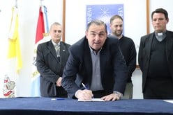 El documento lleva la firma del Prof. Javier Francisco Aga Mgter. Secretario de Relaciones Internacionales de la UNL (secretario ejecutivo de a Mesa de Diálogo) y Eugenio Martín De Palma. Rector de la UCSF (presidente pro-témpore).