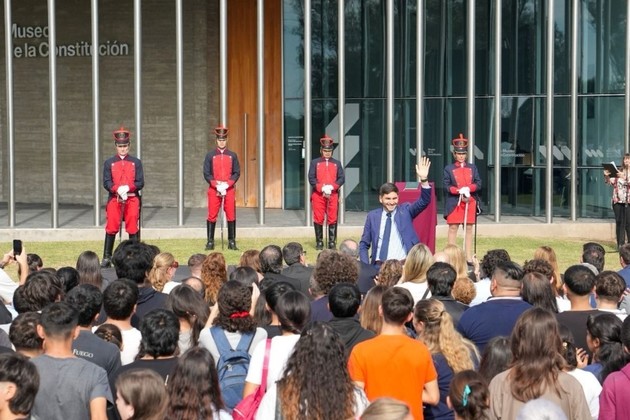Luego les dijo a los estudiantes: "Ustedes hoy van a jurar lealtad a la Constitución Nacional, que es un contrato social que tenemos los argentinos, pero que fundamentalmente representa principios y valores por los cuales se rige nuestra sociedad".