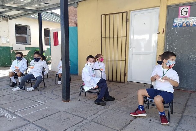 Los chicos se van adaptando de una manera fantástica al cumplimiento del protocolo, responden al uso del barbijo, al lavado de manos, al uso de alcohol el gel , destacó la directora de la escuela Nº 64 La Sagrada Familia .