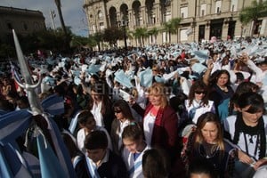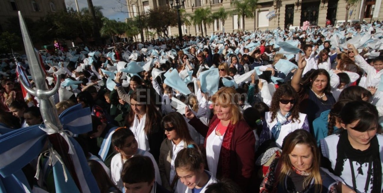 "¡Sí, prometemos!”, respondieron al unísono unos 20 mil chicos de las distintas ciudades, mientras agitaban las banderitas celestes y blancas en un día templado y de sol. Para cerrar, la Orquesta Infantil y Juvenil “General Manuel Belgrano”, integrada por niños y jóvenes de la red de escuelas orquestas de toda la provincia, interpretó la canción “Saludo a la Bandera”.