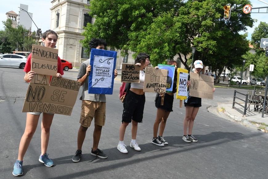 Este jueves por la tarde, en la esquina de bulevar Pellegrini y 9 de Julio, se convocaron estudiantes secundarios para hacerse escuchar ante los constantes recortes en educación de parte del Gobierno nacional y el creciente costo de los útiles escolares. La invitación surgió del Movimiento de Unidad Secundaria (MUS), que se define como independiente y de lucha en defensa de la educación del país.