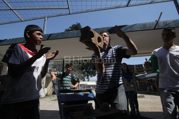 Afuera, la cooperativa Teko mostraba cómo fabricar bloques de tierra comprimida para que los estudiantes puedan tener un futuro laboral en la construcción. A cada ladrillo terminado, había alegría y aplausos.