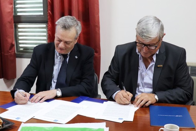 Reunión entre las autoridades de la UCSF y la Coop. Lehmann en el marco de la iniciativa Reserva Forestal Educativa. Crédito: UCSF