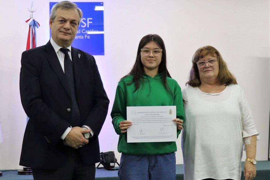 "Para nuestra universidad, estas becas son una manera particular de vincularse y servir a las instituciones educativas y de la comunidad. Estas y otras acciones manifiestan el compromiso social que asume la Universidad Católica de Santa Fe, de manera particular, con ustedes estudiantes y con sus familias" expresó el rector de la UCSF, Mgtr. Lic. Eugenio Martín De Palma.