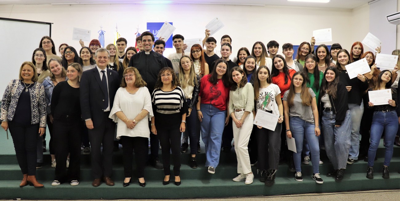 Estudiantes de escuelas secundarias seleccionados para recibir las becas Mons. Zazpe para continuar sus estudios superiores. Gentileza UCSF