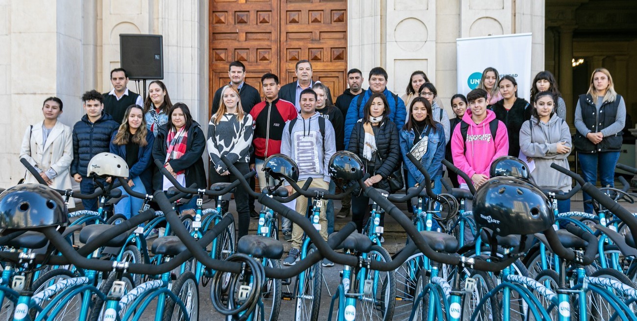 Se realizó un acto de entrega de 20 bicicletas a estudiantes de la UNL que solicitaron esa beca en la convocatoria 2024 impulsada por la Secretaría de Bienestar Universitario. El acto se realizó en la explanada de Rectorado de la UNL y fue encabezado por el rector Enrique Mammarella, el secretario de Bienestar Universitario Cristian Vázquez y autoridades de la Federación Universitaria del Litoral.
