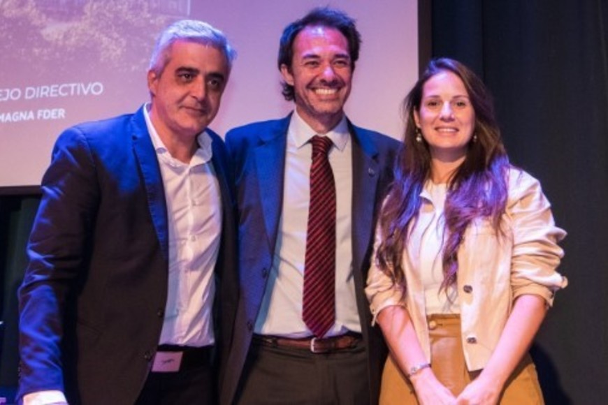 Una nueva etapa. El rector de la UNR, Franco Bartolacci, con los doctores Hernán Botta y la doctora Emilia Barberis.