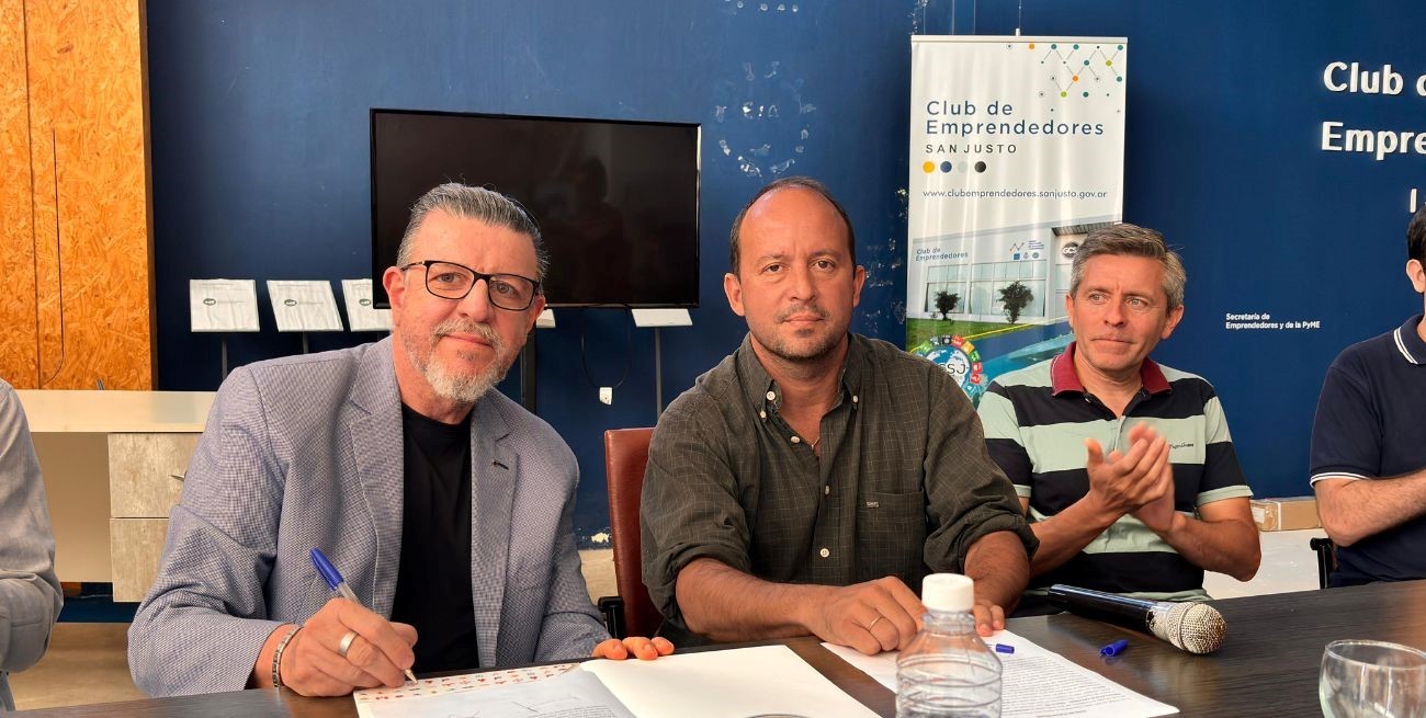 El decano Eduardo Donnet, el intendente Nicolás Cuesta y Walter Chartier, empresario de San Justo y presidente del Foro de Producción, firmaron el convenio.