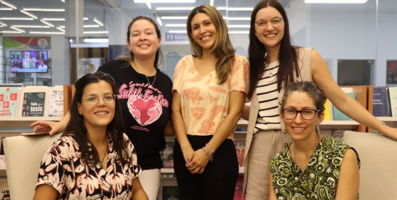 Equipo de investigación: sentadas de izq a der: Yamila Díaz y Celeste Nessier; de pie Ailén Villalba, Constanza Gunsett y Analía Gaspoz