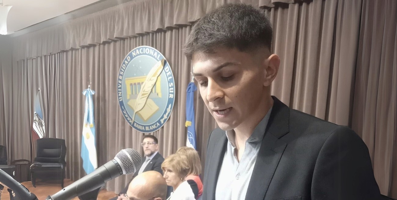 Emiliano Montero, egresado de la Universidad Nacional del Sur, conmovió a todos con sus palabras, tras convertirse en el primer graduado universitario de una familia trabajadora. Lleno de gratitud, destacó también el rol de la educación pública como herramienta de transformación social.