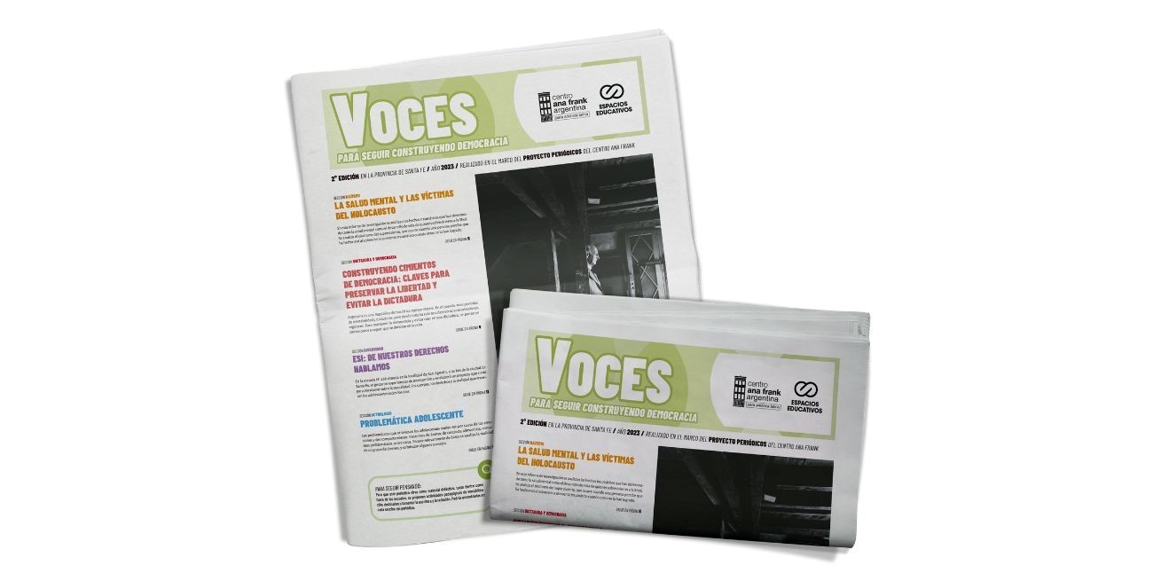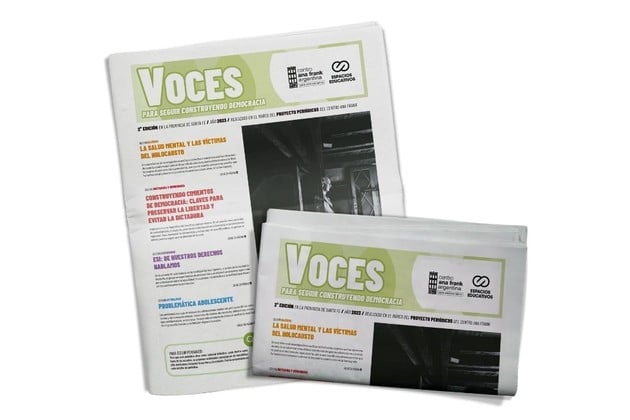 Respecto de algunos de los ejes que se encuentran en el Periódico Voces, Simoniello agregó: “Se desarrollaron temas muy diversos que nos demuestran que hay muchos puntos de interés para problematizar o divulgar. Piezas que invitan a imaginar qué dirían hoy algunas personas del pasado, reflexiones sobre la salud mental de quienes sobrevivieron a la Shoá, relatos imaginados de personas que eran parte del régimen que quieren desobedecer y rebelarse, historietas e instrucciones sobre el valor de nuestra democracia y la importancia del nunca más, reflexiones y notas de opinión acerca de los estereotipos, prejuicios, discursos de odio, la convivencia en la diversidad, diversas iniciativas que se están realizando en las comunidades, encuestas e historietas sobre problemáticas de las y los adolescentes, entre otros. Hay mucho sobre lo que expresarnos, queda mucho por hacer, pero también se visibiliza mucho de lo que actualmente se está haciendo, en y gracias a la Democracia”.