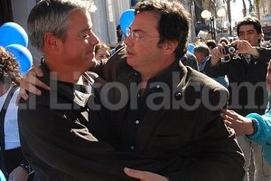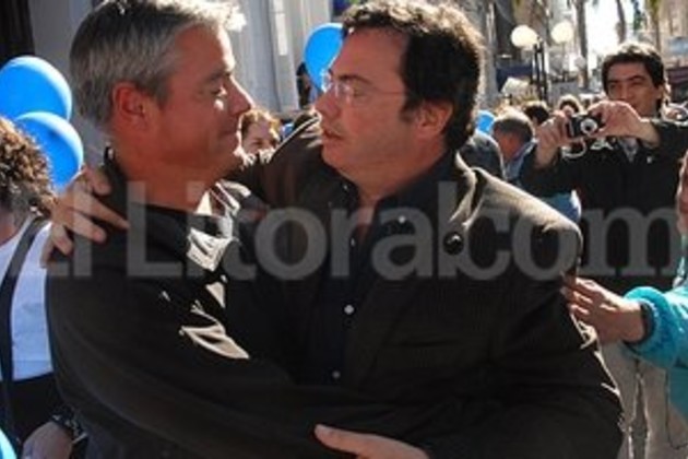 Los precandidatos a intendente, Diego Degano y Martín Gainza, se encontraron en la peatonal.