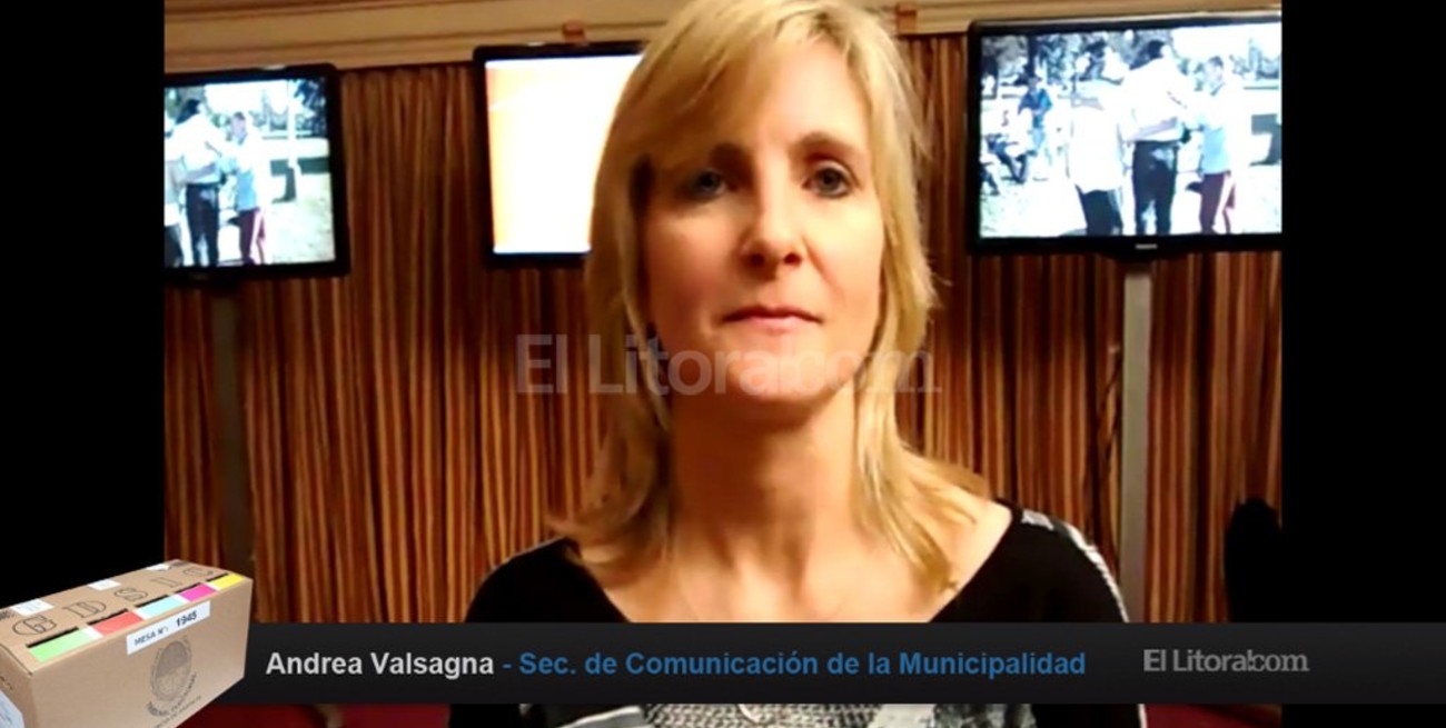 La secretaria de Comunicación de la Municipalidad y mano derecha del actual intendente José Corral, Andrea Valsagna, dijo que están expectantes del resultado electoral. Reconoció que “todo indica que vamos a tener el primer intendente reelecto en Santa Fe, esperemo que así sea y que en los próximos minutos tengamos aquí al intendente dando la información”.