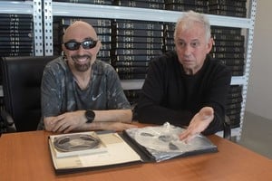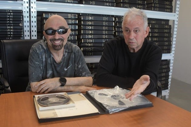 Tersse y Sáez con las cintas originales del disco, grabado en los estudios Recordex de Buenos Aires. Foto: Guillermo Di Salvatore