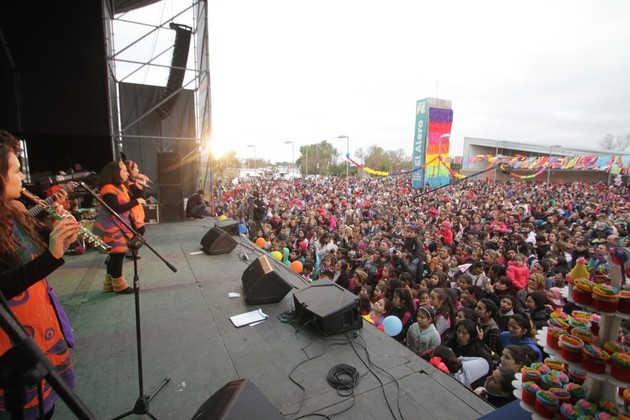 Un rato antes de las cinco se subieron al escenario los “Canticuénticos”, quienes con sus reconocidos temas hicieron cantar y bailar a grandes y chicos. Con el grupo sobre el escenario llegó el momento más esperado por todos: el gran ritual de cumpleaños. Una decena de niños y niñas que cumplían un año, al igual que El Alero, y en representación de centenares, se acercaron con sus padres al escenario, soplaron las velitas y se les entregó un obsequio construido en el espacio. Luego, se rompieron las más de 50 piñatas que se ubicaban sobre la pista de baile, con papeles de colores y muchas sorpresitas.