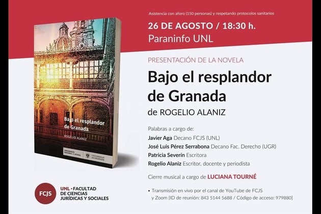 Este jueves a las 18.30, con la organización de la Facultad de Ciencias Jurídicas y Sociales (FCJS), tendrá lugar en el Paraninfo de la UNL la presentación del libro “Bajo el resplandor de Granada”. Se trata del último trabajo literario del periodista, docente y escritor Rogelio Alaniz. Además del propio autor, estarán presentes Javier Aga, decano de la mencionada facultad, José Luis Pérez Serrabona, decano de la Facultad de Derecho de la UGR y la escritora Patricia Severín.