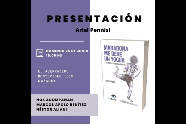 Ariel Gustavo Pennisi (1982) nacido y criado en el barrio del abasto de la ciudad de Rosario; acaba de publicar con la editorial porteña, Azul Francia su primer libro de cuentos titulado “Maradona me debe un yogurt y otros cuentos del abasto”. El cuento que bautiza la antología, lleva el arte de tapa de Andres Pennisi, y conjuga la épica del diez con una de las pasiones que envuelve a su escritor: el futbol. Tambien vale mencionar que el cuento recibió una mención especial por parte de la editorial colombiana Gold Editorial, por el certamen literario Con corazón de cuero, homenaje al escritor Osvaldo Soriano.