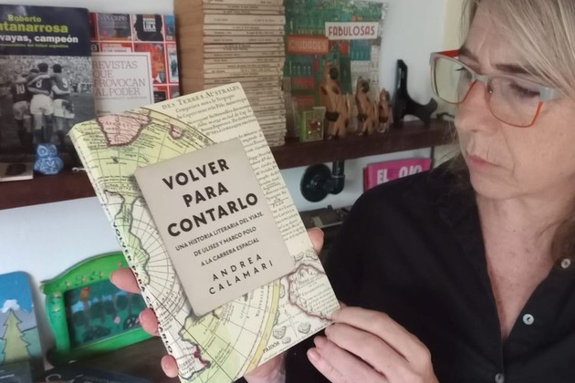 La comunicadora y docente rosarina Andrea Calamari sacó del horno en febrero de este año el primer libro de su autoría: “Volver para contarlo: una historia literaria del viaje. De Ulises y Marco Polo a la carrera espacial”.