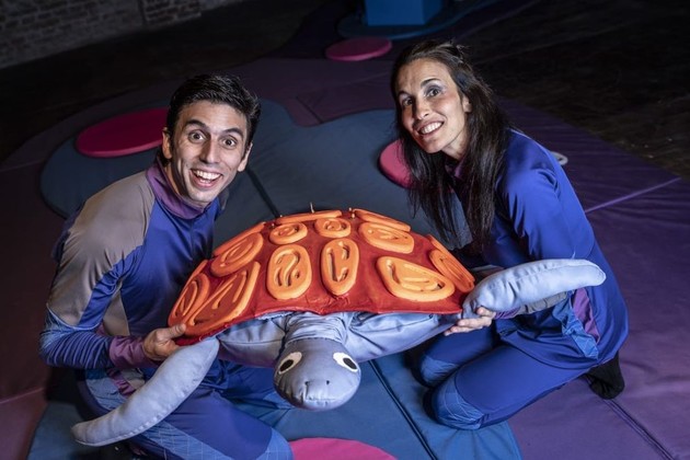 En OTA, el escenario circular con el público a su alrededor, recrea el fondo del mar donde suceden las situaciones de esta obra diseñada para la infancia del apego. Es un cuento presentado por una actriz y un actor, quienes narran la historia, tocan instrumentos y manipulan muñecos. Es una obra con texto y argumento, ya que el grupo considera que los bebés tienen capacidad interpretativa para comprender el relato mucho antes de hablar. Al terminar, se le invita al escenario para jugar y vivenciar un momento lúdico-sensorial y ser protagonistas. Es una propuesta visual, sonora, sensorial, lúdica y argumental.