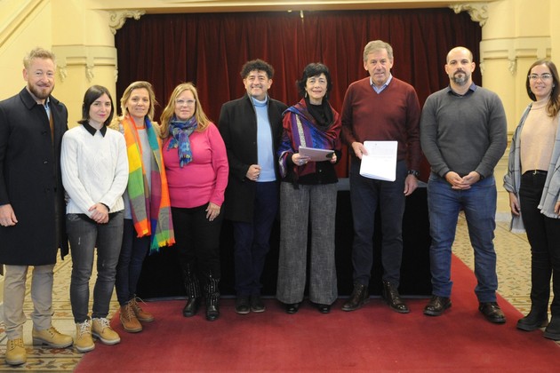 La firma del acuerdo contó además con la presencia del secretario de Educación y Cultura, Paulo Ricci, entre otras autoridades municipales; del director santafesino Edgardo Dib; y de integrantes del elenco y el equipo de producción.