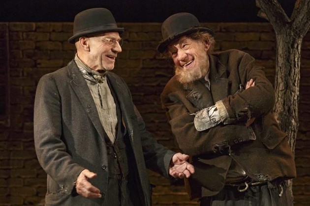 Los actores británicos Patrick Stewart e Ian McKellen en la puesta que se montó en Broadway a partir de la obra de Beckett. Foto: Cort Theatre