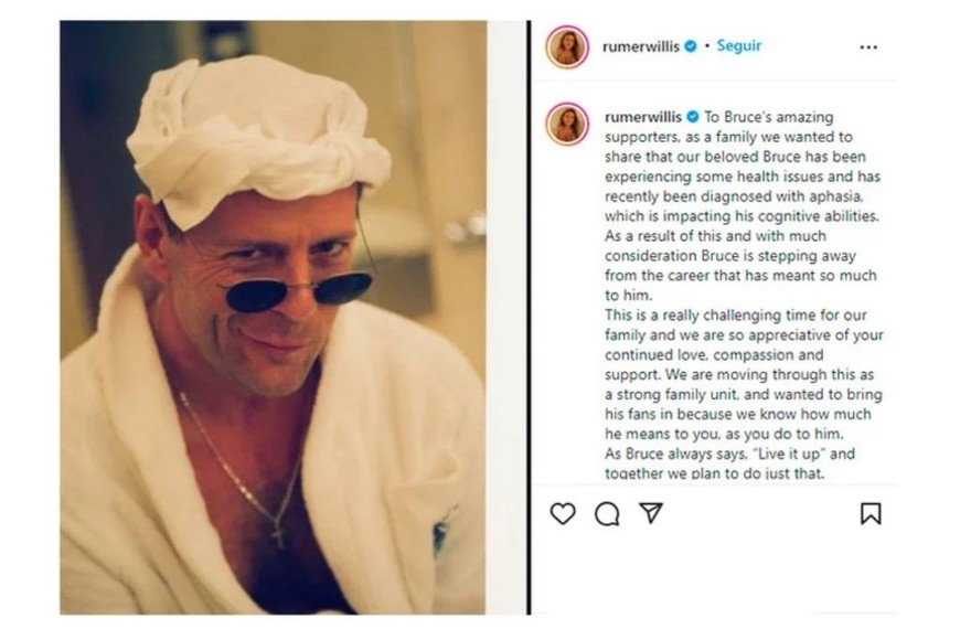El popular actor y héroe de múltiples películas de acción Bruce Willis, de 67 años, se retiró de la actuación luego de ser diagnosticado con afasia, una enfermedad cognitiva que deriva en la pérdida de capacidad para expresarse y que afecta a la capacidad de comprensión