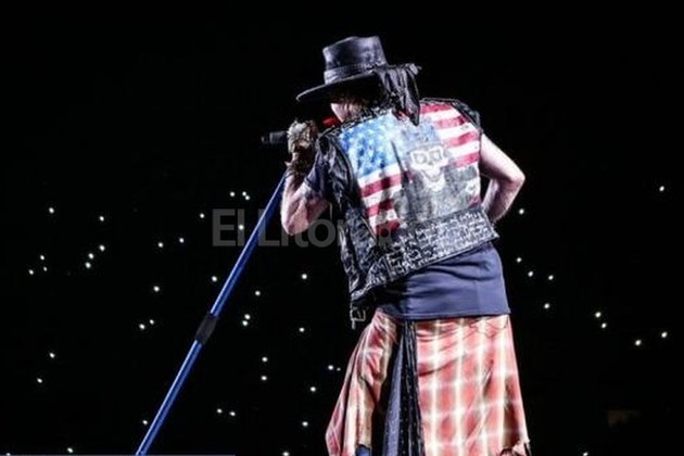 Y los dueños de la pelota: Rose, lejos de las calzas ciclistas, más delgado que en el último tiempo, haciendo gala de una colección de camperitas sureñas, camisa leñadora a la cintura y botas texanas, llevando sobre el final su emblemática bandana; Slash, siempre igual a sí mismo, con leñadora, galera y gafas; y Mc Kagan, con camperita sin mangas y un bajo con el símbolo de Prince (cuando se convirtió en símbolo). Sabedor el viejo zorro de que es un fundador y tiene hinchada abajo del escenario, pero reconociendo (y habiendo sido el facilitador, dicen) que los otros dos son la química esperada: el cantante y el guitarrista que se cruzan sobre el escenario, mirándose poco, y por ahí se buscan pero se dejan distancias (sólo sobre el final del show Axl se sentará al lado de Slash sobre un monitor, mirándolo tocar un solo, sonriente).
