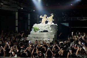 ara sorpresa de todos, el dúo ingresó a las 20.30 desde la calle (y no desde el escenario), en un camión gigante con un jacuzzi. Foto: Gentileza Toto Pons