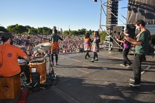 El grupo de música infantil se presentó ayer en el Parque Federal, ante unas 8 mil personas. El show, que incluyó sus canciones más reconocidas, contó con la animación del pasayo y titiritero Gustavo “Tuti” Nuñez. Se reunieron útiles escolares para la escuela Salvador Caputto, de la localidad de El Sombrerito.