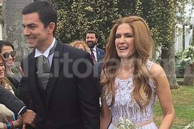 A las 15.15, los flamantes esposos se acercaron al portón principal, en la entrada a la residencia, donde más de cien periodistas, camarógrafos y fotógrafos los esperaban ansiosos, pero apenas pudieron saludar y posar para las imágenes.