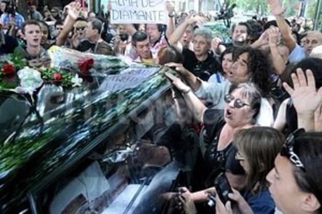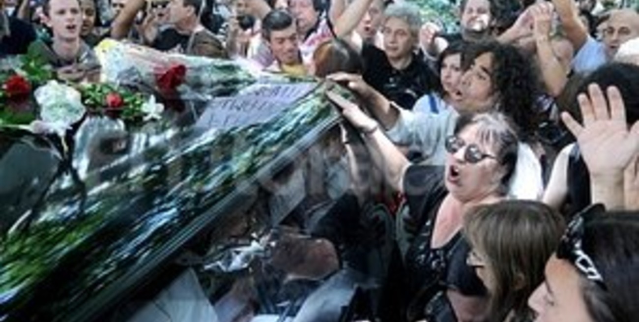 Un cerrado y constante aplauso acompañó los restos de Luis Alberto Spinetta, en el lento andar del cortejo fúnebre que a las 12.10 abandonó la funeraria del barrio porteño de Belgrano con rumbo a un cementerio privado de Pilar.