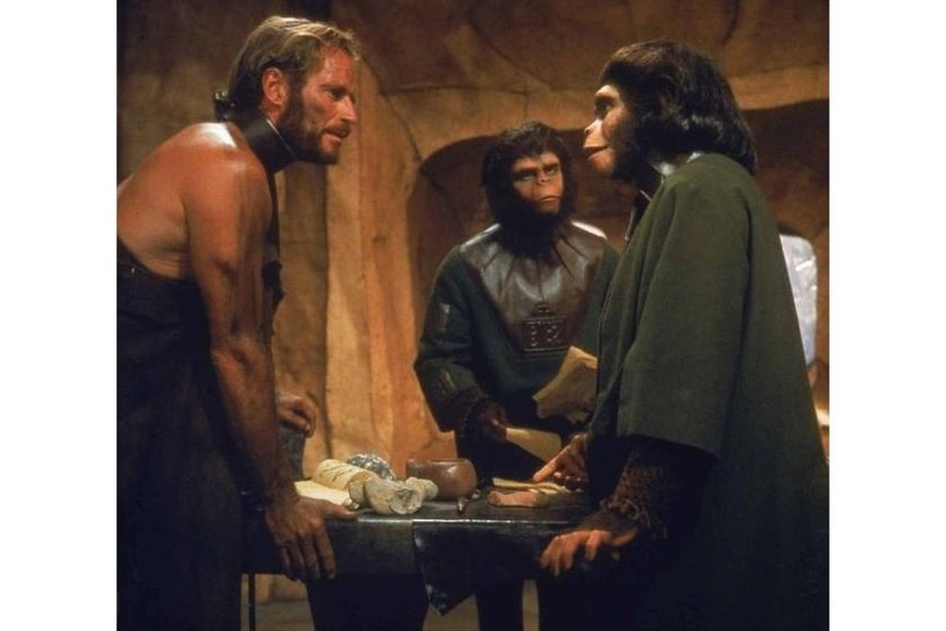 En 1968, una película cuyo argumento parecía disparatado, se convirtió en un suceso: “El planeta de los simios”. Con Charlton Heston (que venía de interpretar en los años anteriores a Ben Hur y a Moisés en ese resurgir del gigantismo que vivió Hollywood en los 50’) como protagonista, describe la llegada de unos astronautas a un mundo extraño. En el cual, en una especie de inversión de las teorías darwinianas, el hombre ha vuelto a un estadío primitivo, mientras el simio ha evolucionado hasta convertirse en la especie dominante.