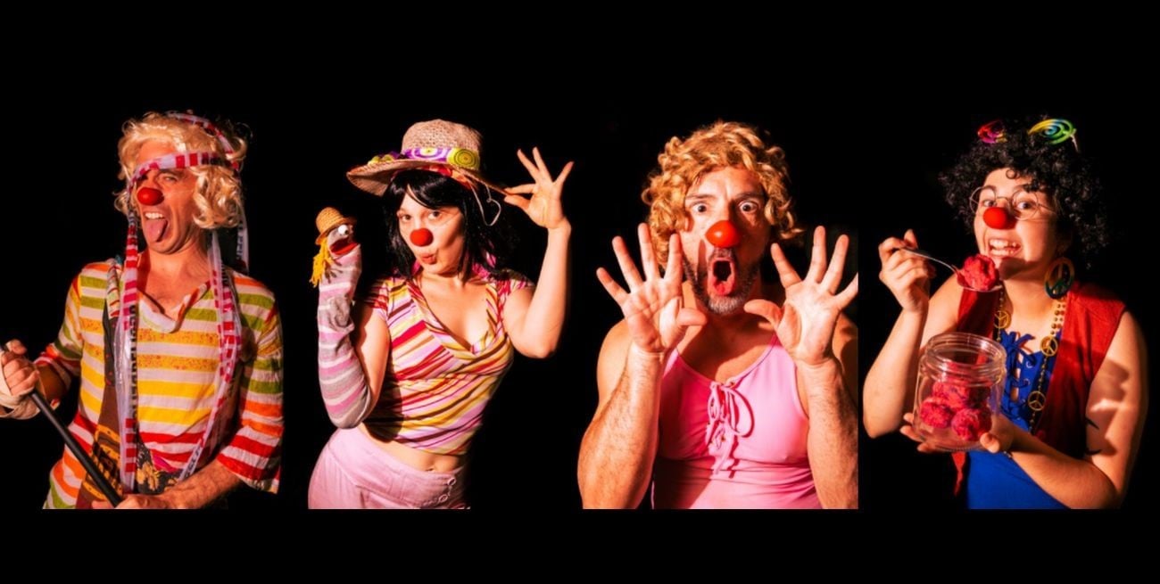 Valli, Coria, Araujo y Arias cuentan una historia a partir de una serie de recursos de clown, humor físico y “comedia de puertas”. Fotos: Gentileza Franco Airaldi