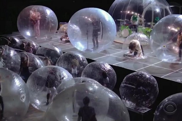 La agrupación, que es liderada por el vocalista Wayne Coyne, fue invitada de manera especial al programa The Late Show with Stephen Colbert, sin embargo, esta no sería una presentación normal, las personas estuvieron durante todo el show con sus burbujas de plástico personales, cumpliendo así con el distanciamiento social y garantizando la seguridad de las personas.