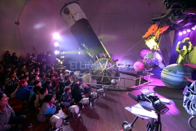 “Lo esencial es invisible a los ojos” sostuvo el personaje protagónico de “La odisea del Principito”, un magnífico montaje escénico de la Compañía Babel Recursos Artísticos para dar inicio a este Festival en la Estación Astrofísica de Bosque Alegre, en una montaña llena de verdes con la primavera estallando por todos lados. Ese telescopio gigante fue el testigo (¿mudo?) de una travesía que tuvo en cuenta en ese lugar alejado a alumnos y docentes de escuelas rurales de la zona, que quedaron boquiabiertos —como nosotros- ante el artificio de una historia conocida y profunda, que conmovió y maravilló a todos por igual. Las notas distintivas del espectáculo son muchas, pero es imposible no destacar la belleza visual de un vestuario rico en texturas y colores; el afiatado elenco y todos los rubros técnicos puestos al servicio de una totalidad por muchas razones magnífica.