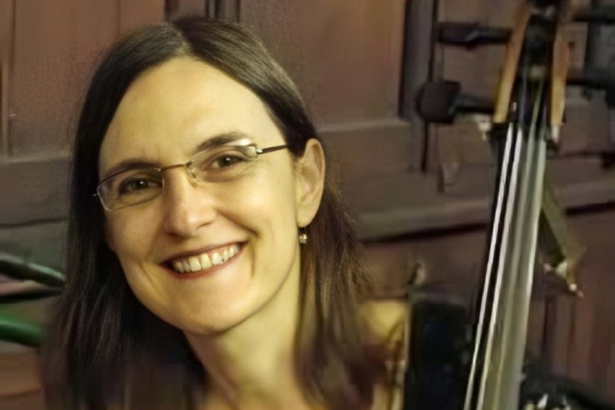 María Jesús Olóndriz, violoncellista del Ensamble Fulmini de Rosario: desde el rol de continuo de la orquesta acompaña al solista en el relato del Evangelio. Foto: Gentileza de la artista