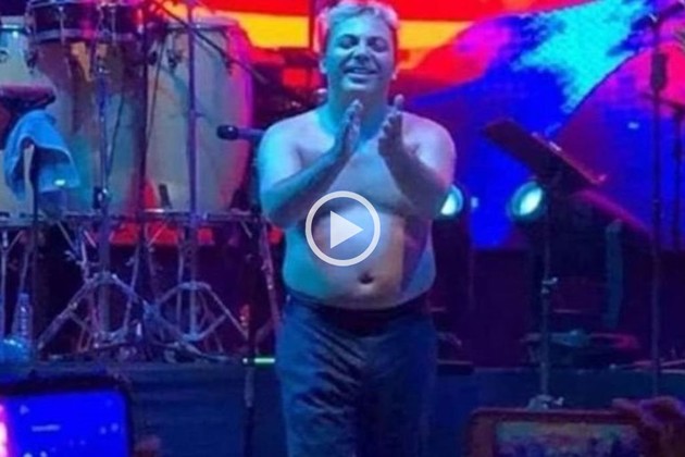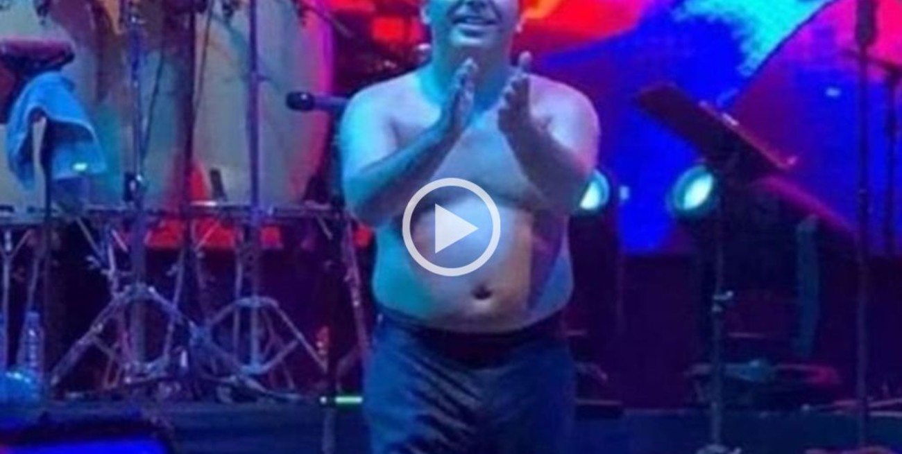 El cantante sorprendió cuando por el intenso calor, se quitó la camisa y mostró su barrigón.