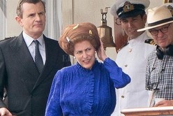 La transformación de Gillian Anderson en la ex primera ministra Margaret Thatcher también se dio a conocer. Las primeras imágenes de ella en el set se difundieron en enero. En ellas, se la ve con el característico peinado bouffant de la política conservadora, así como con su distintivo power suit.