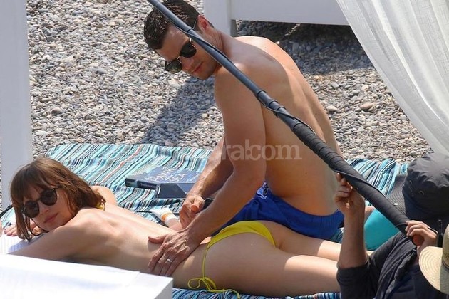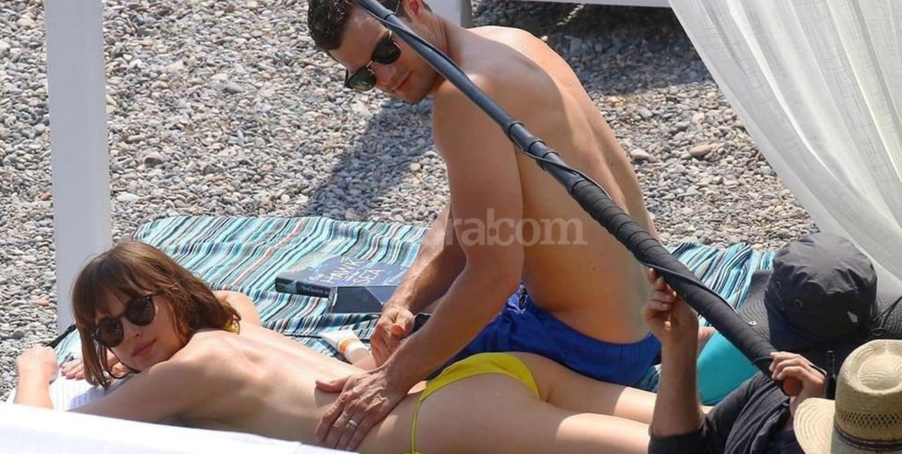 Recientemente se revelaron algunas fotografías del rodaje de la tercera parte de la trilogía donde la famosa pareja aparece en traje de baño. La hija de Don Johnson y Melanie Griffith acaparó las miradas al pasear por las playas de Saint-jean-Cap-Ferrat en Niza, con un diminuto bikini amarillo que le queda pintado.